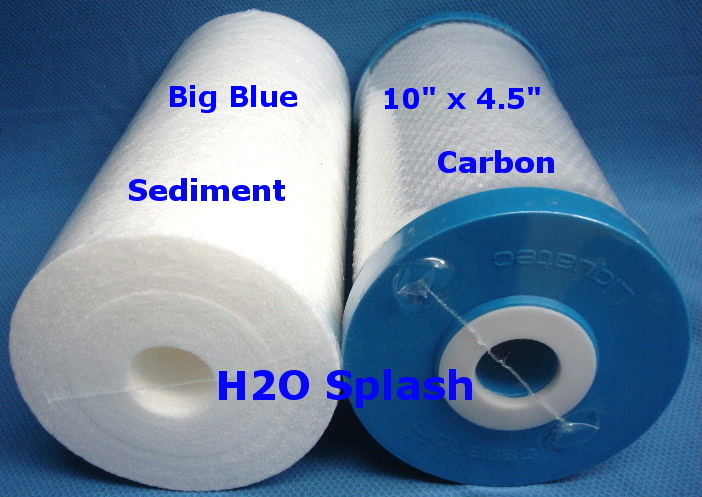 10 Inch x 4.5 Inch Big Blue Clear Dual Whole House Water Filter - Carbon & Sediment Filters