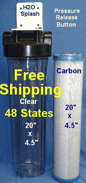 Whole House Filter - Single, 20" BB - Clear Housing - 1" Ports, Carbon